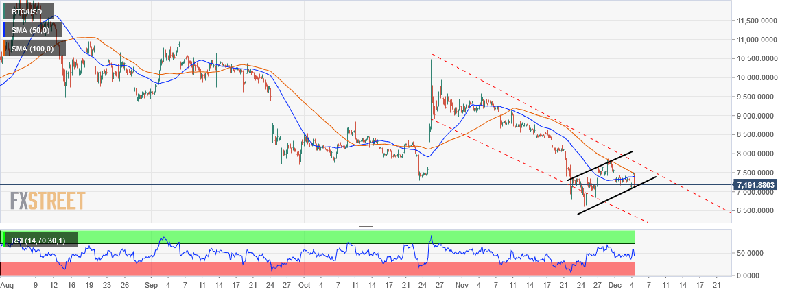 - Bitcoin reclaims the ground above $7,200 but must break the channel resistance to forged ahead.