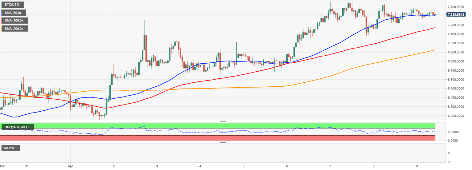 On the intraday level, BTC/USD is hovering around 1-hour SMA50 (currently at $7,300). A sustainable move below this area will increase the short-term selling pressure and bring $7,100-$7,000 into focus. As this area contains 1-hour SMA100, it may limit the downside correction and serve as a jumping-off ground for the next bullish wave. However, if it is broken, the sell-off will be extended towards $6,600-$6,700 area that stopped the decline on April 2-3.