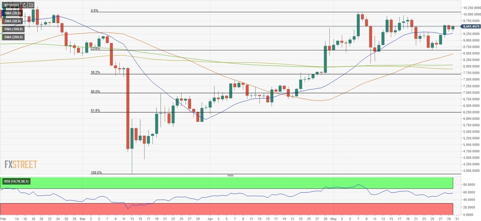 Bitcoin Price Analysis: BTC/USD posts modest daily gains around $9,500