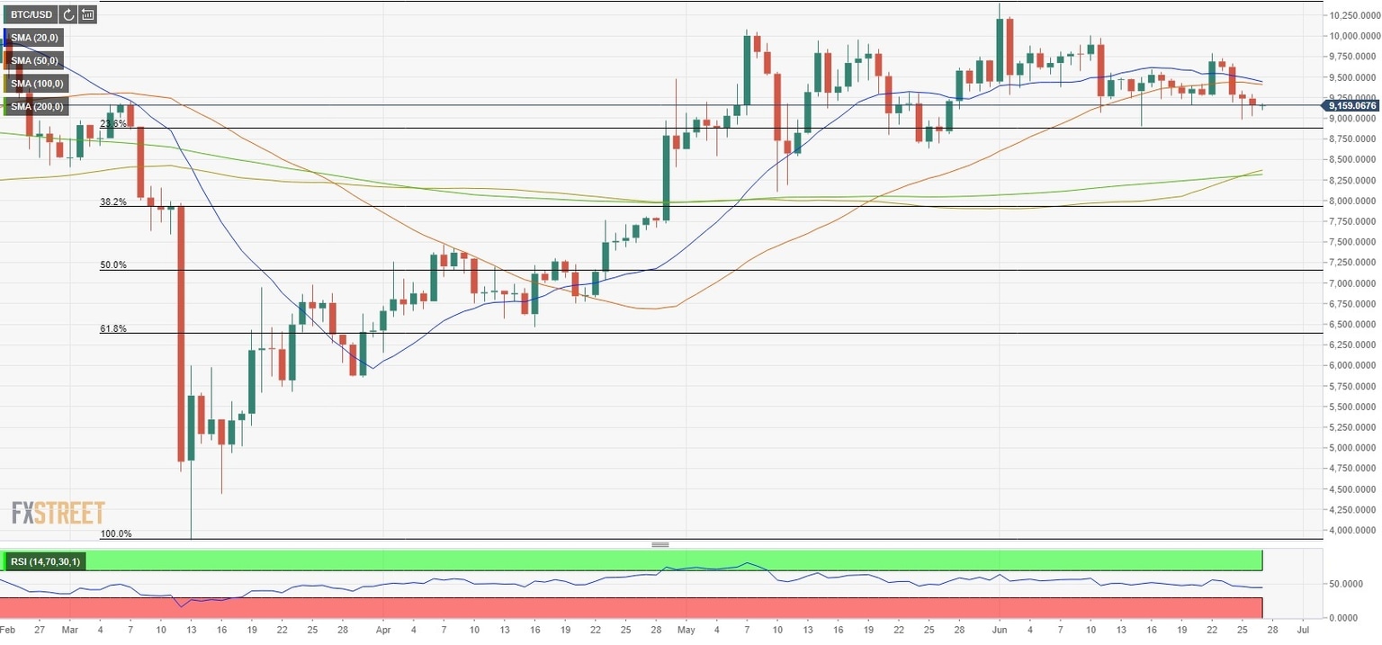 On the downside, $9,000 area (psychological level/Fibonacci 23.6% retracement of March-June rally) aligns as a critical support level ahead of $8,600 (static level) and $8,400 (100-day SMA).
