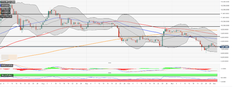 On the upside, a sustainable move above $7,350 walloped up the way towards $7,700 (the middle line of the daily Bollinger Band). The next barrier is created by $8,000; however, the ultimate resistance awaits un on approach to $8,300. Reinforced by SMA50 (Simple Moving Average) daily, it represents a pivotal point for BTC covert in the midterm.