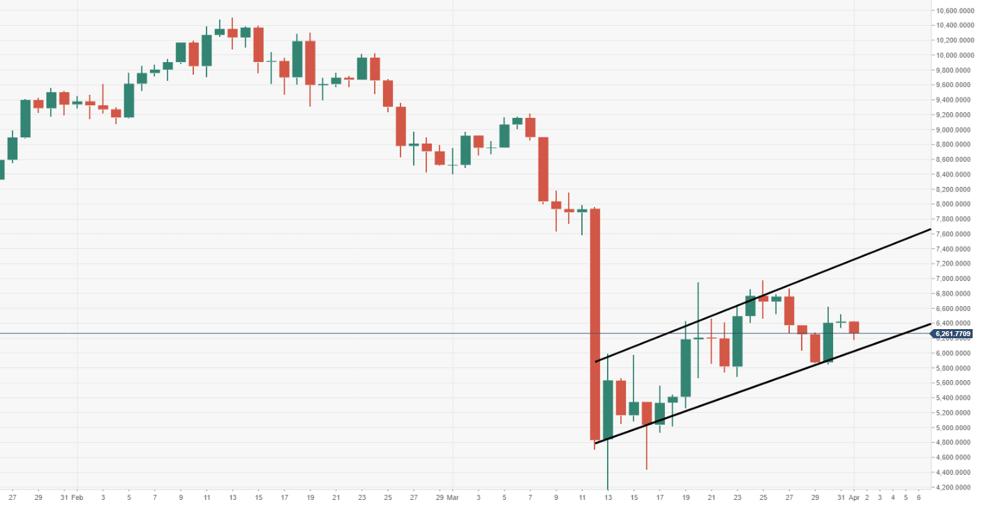 - Upside is extremely limited by a barrier of resistance, at the $6500-$7000 price range.