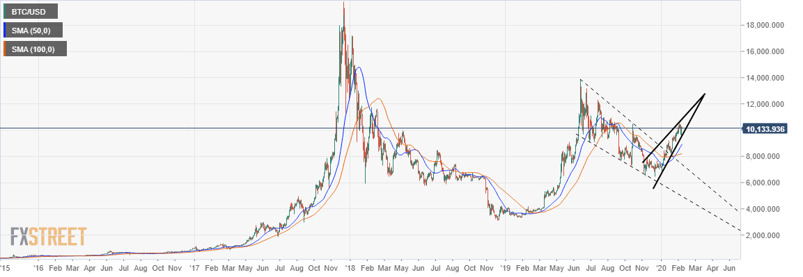 Bitcoin's incredible performance in the last couple of months follows an impressive breakout from a long-term falling wedge pattern that started its formation since the June 2019 highs around $13,884. The recovery has stepped above $10,500 in February, further confirming that Bitcoin's bullish phase ahead of the May 2020 halving event. However, the formation of a short term rising wedge pattern paints a picture of a bull trap that could get many traders and investors pants down. On the brighter side, the effects of the wedge pattern could be averted by pulling BTC above $11,000 and towards $12,000 in the near term.