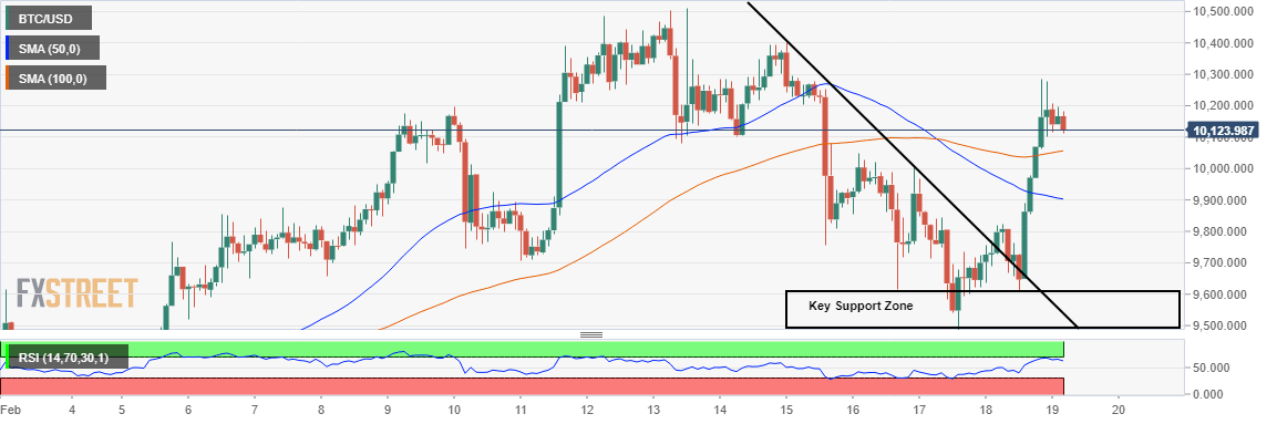 - Bitcoin price recovery from the lows at $9,500 stalls short of $10,300.