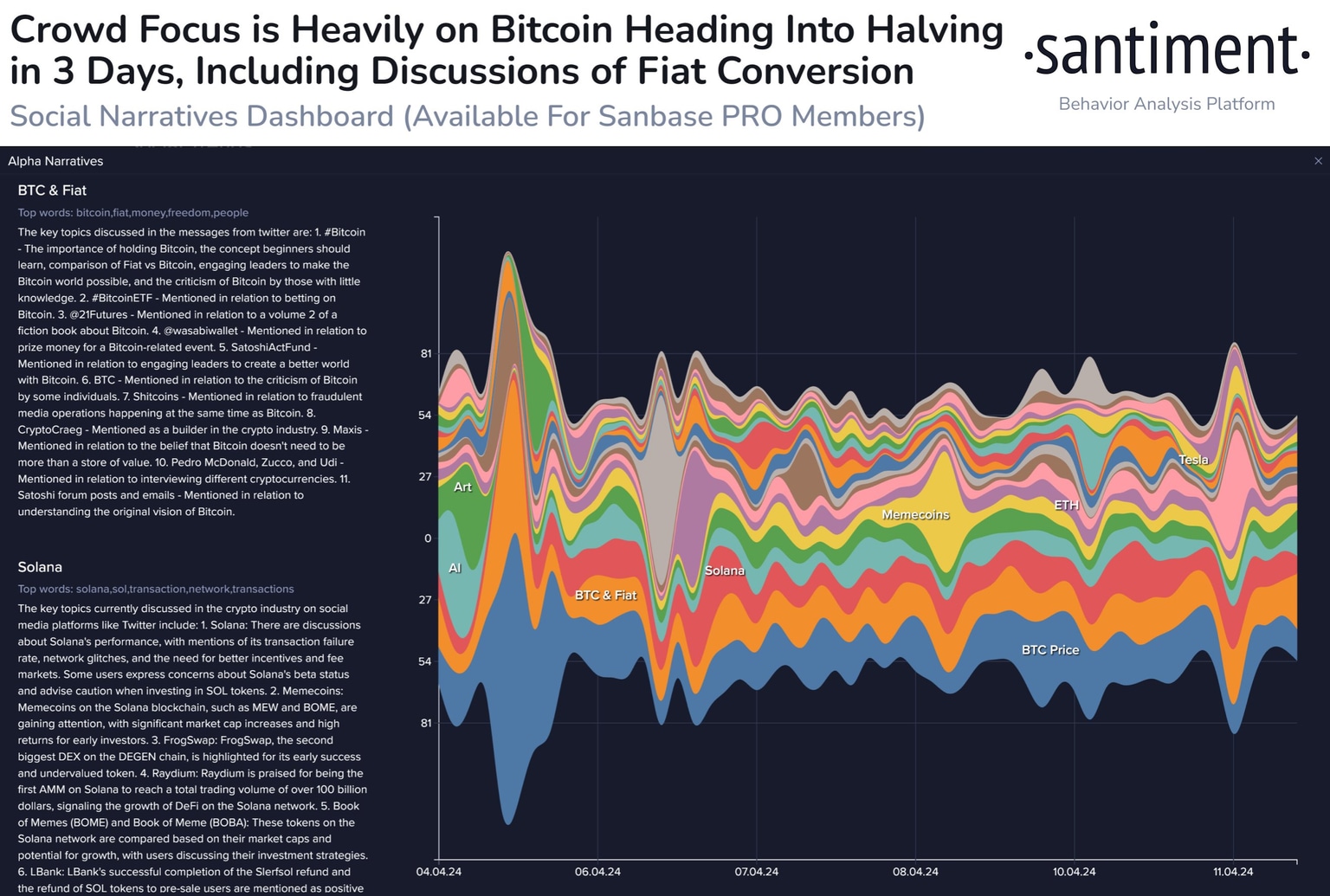 Traders are also increasing conversations about “BTC and the viability of holding through a potential extended correction past the halving,” Santiment reports.