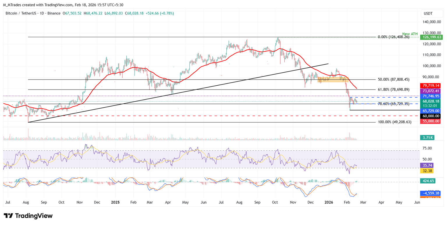 - Bitcoin continues to trade sideways between $65,729 and $71,746, extending its consolidation since February 7.
