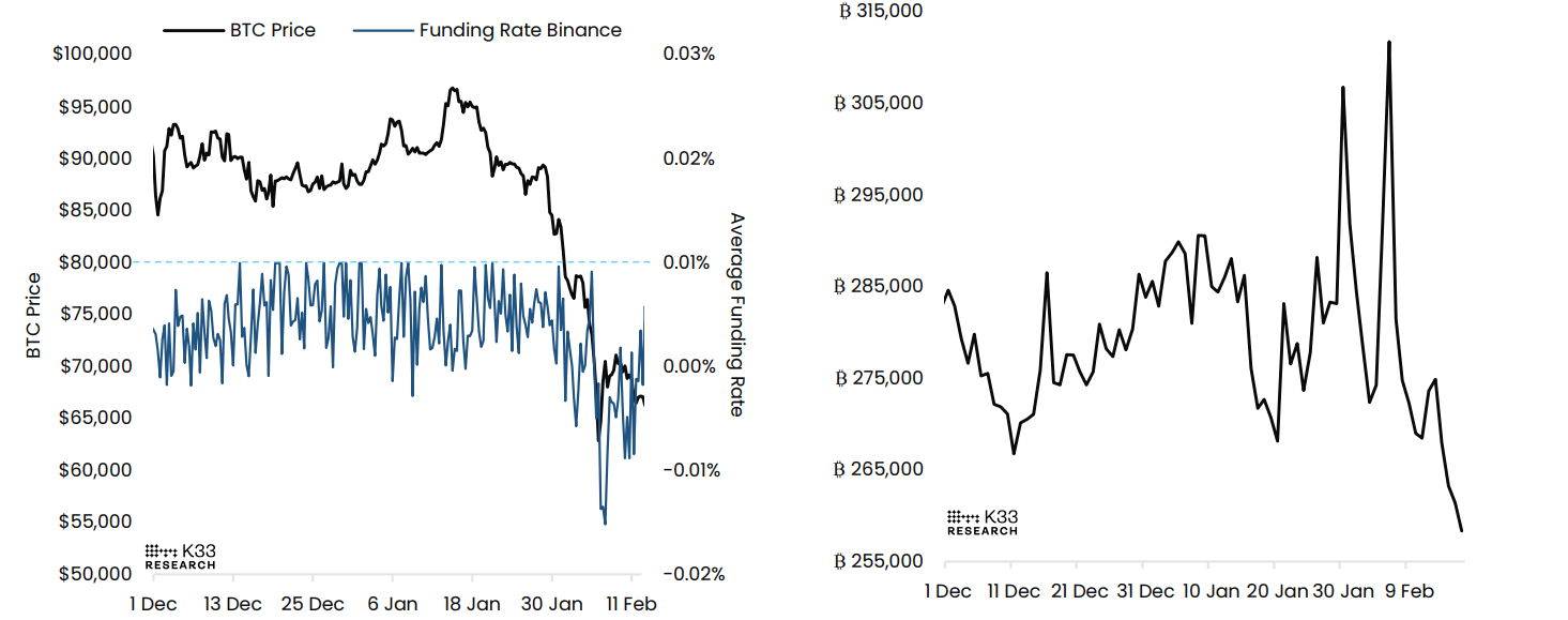 Bitcoin (BTC) remains locked in a tight consolidation, trading within a horizontal range around $68,000 at the time of writing on Wednesday, having held within this range since February 7. The ongoing sideways trading in the Crypto King is further supported by mild Exchange Traded Fund (ETF) outflows and defensive positioning in the perpetual futures market. Meanwhile, reports suggest that long positions are steadily exiting during the slow consolidation, signaling a risk of derivatives-driven squeezes unless a fresh catalyst emerges.