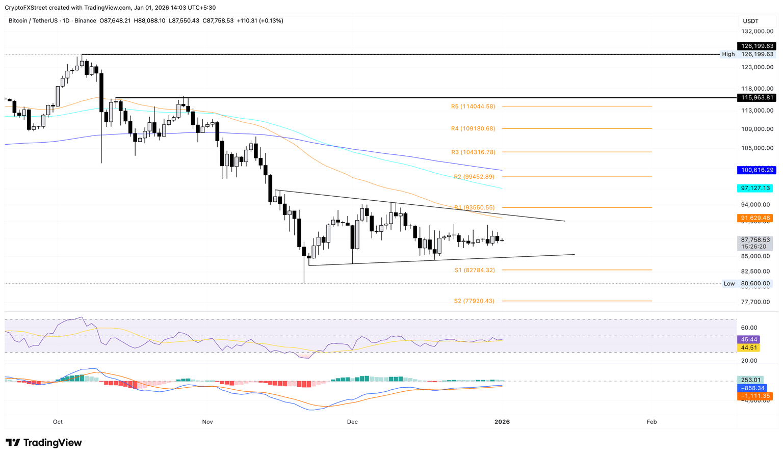Bitcoin price is trading below $88,000 at the time of writing on Thursday, down 1% from Wednesday. The BTC is extending its sideways trend within a symmetrical triangle pattern, as previously reported by FXStreet.