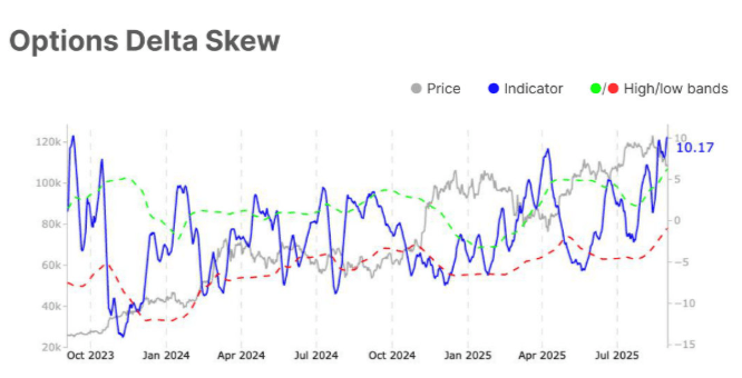 However, 25-delta skew surged above historical extremes, highlighting strong demand for downside protection and reinforcing a defensive tilt among options traders.