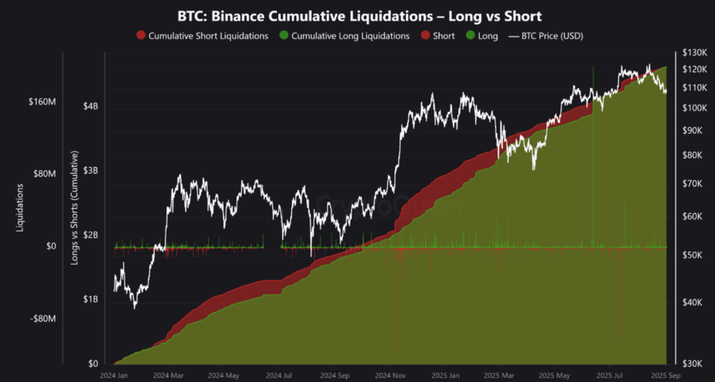 Bitcoin price shows some signs of relief so far this week, ending three consecutive weeks of retracement from its record high of $124,474. This price correction of nearly 14% from its record high to the August low of $110,680 has triggered a massive liquidation in traders' positions.