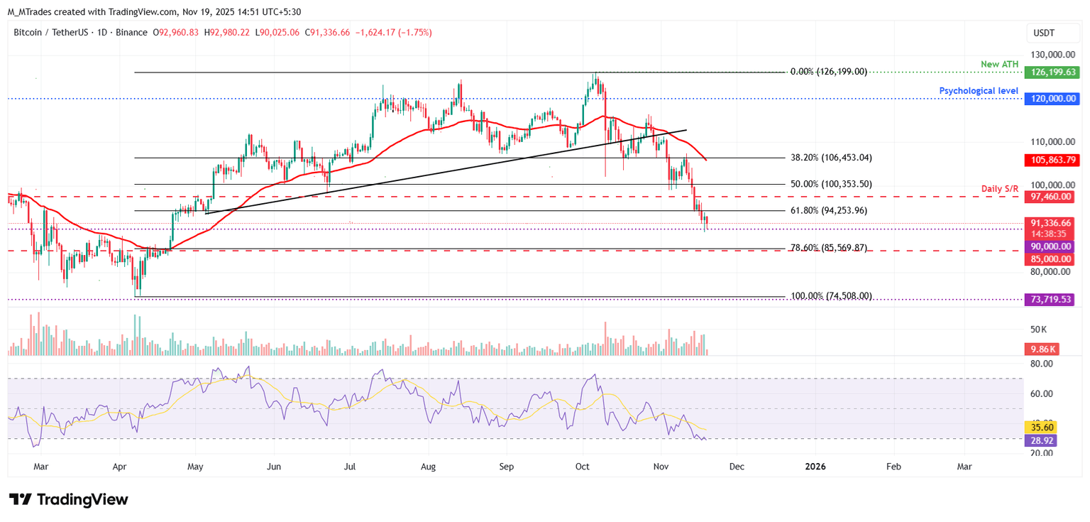 If the psychological level at $90,000 continues to hold, BTC could extend the recovery toward the 61.8% Fibonacci retracement at $94,253.