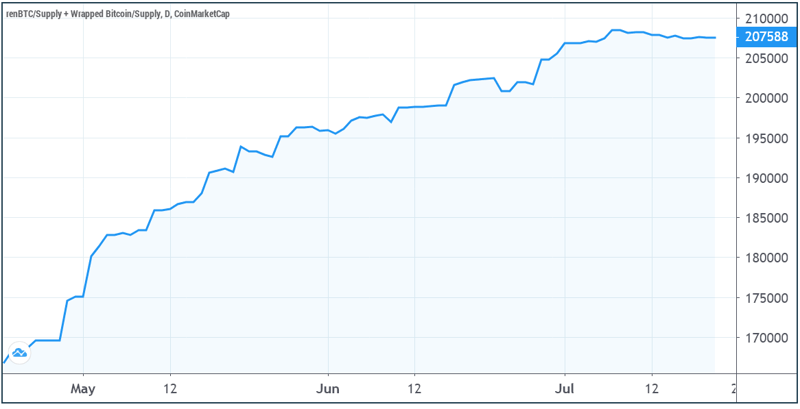 RenBTC and Wrapped BTC aggregate supply. Source: Cointrader.pro