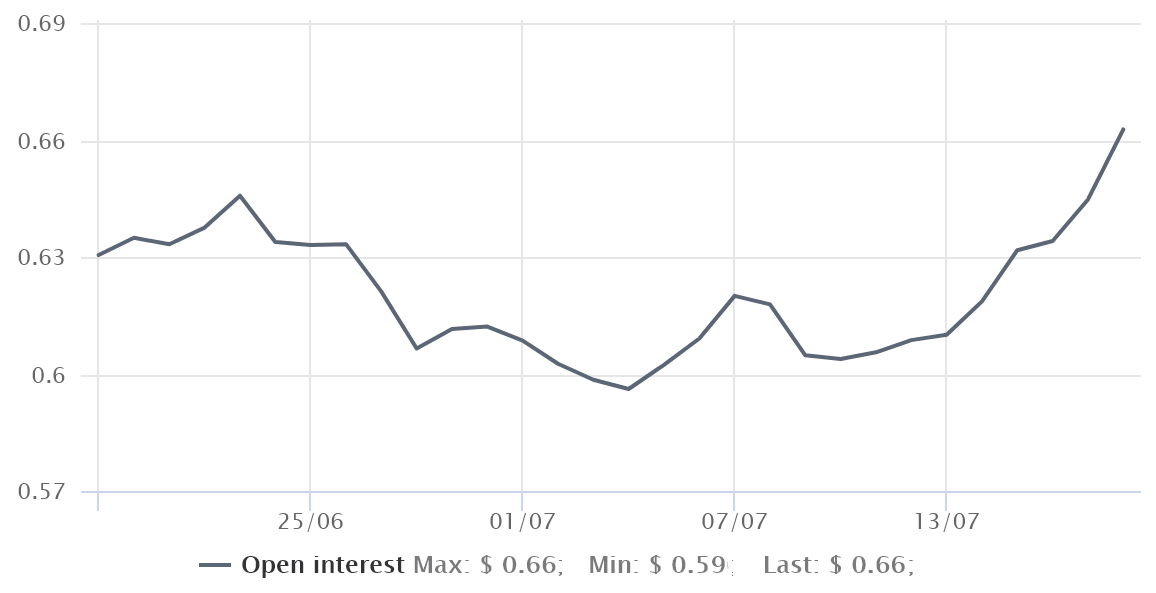 Whenever the put-to-call ratio increases, it means the open interest on these neutral-to-bearish contracts is growing, and it is usually interpreted as a negative signal. The most recent data at 0.66 still favors the call options, but these instruments gradually lose ground.