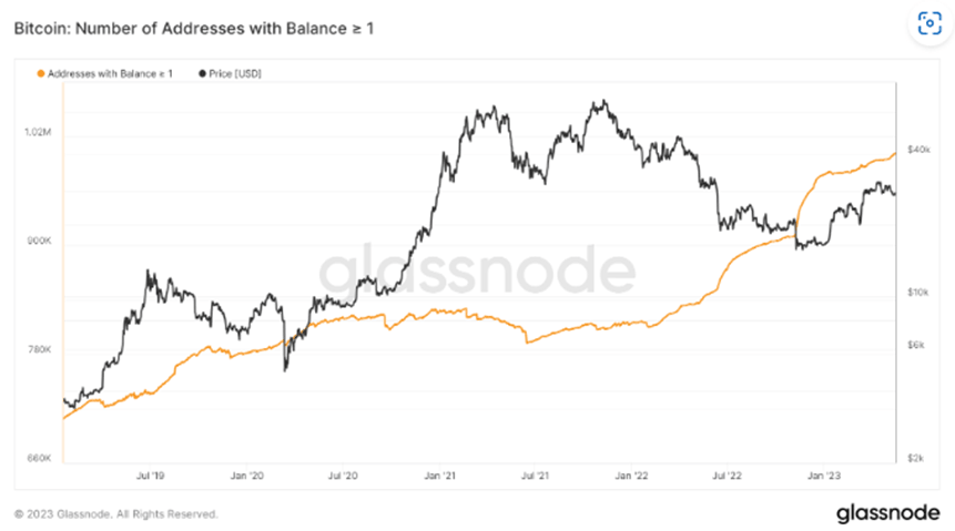 - The comment sprouts from Glassnode data showing over 1 million addresses holding at least 1 BTC as of May 18.