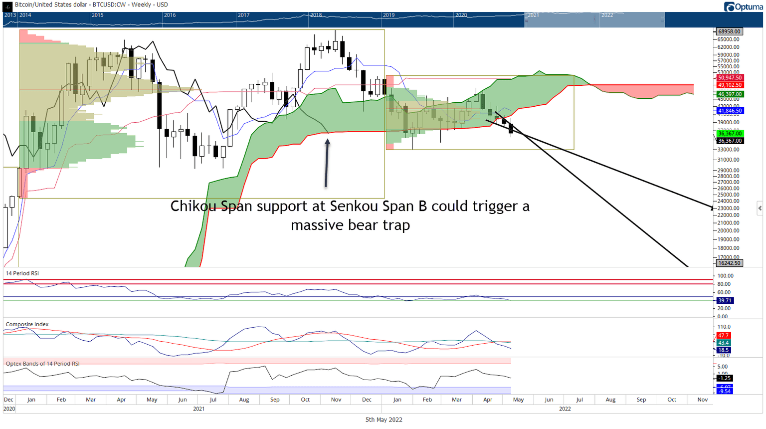 Bitcoin price action on the weekly Ichimoku chart is positioned for the single most bearish setup since November 2018. Bitcoin is in a confirmed Ideal Ichimoku Bearish Breakout - a condition that warns of prolonged bearish price action. While these events have happened in the past, the current setup is slightly different.