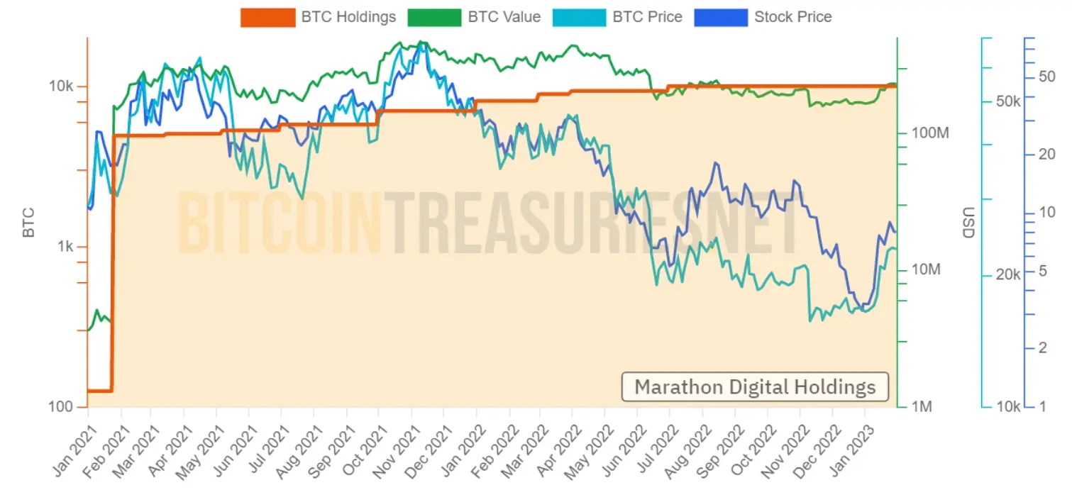 Marathon’s Bitcoin Treasury holdings. Source: BitcoinTreasuries!Net