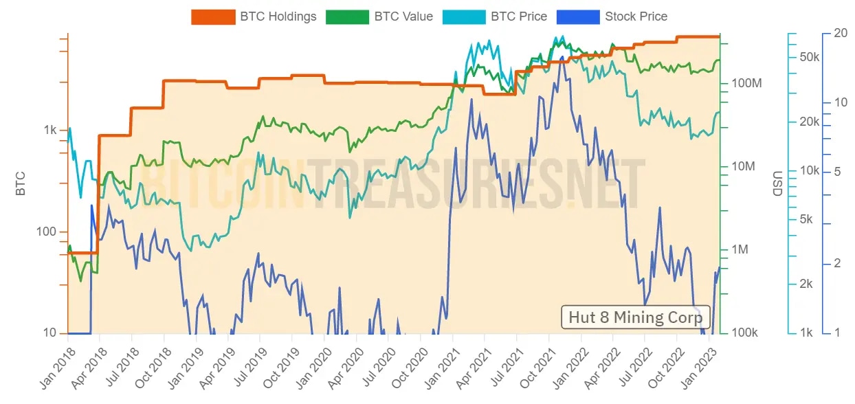 At the same time, Hut 8 mining uses a more aggressive policy in selling its mined BTC. This has led to a strong increase in its holdings since mid-2022.