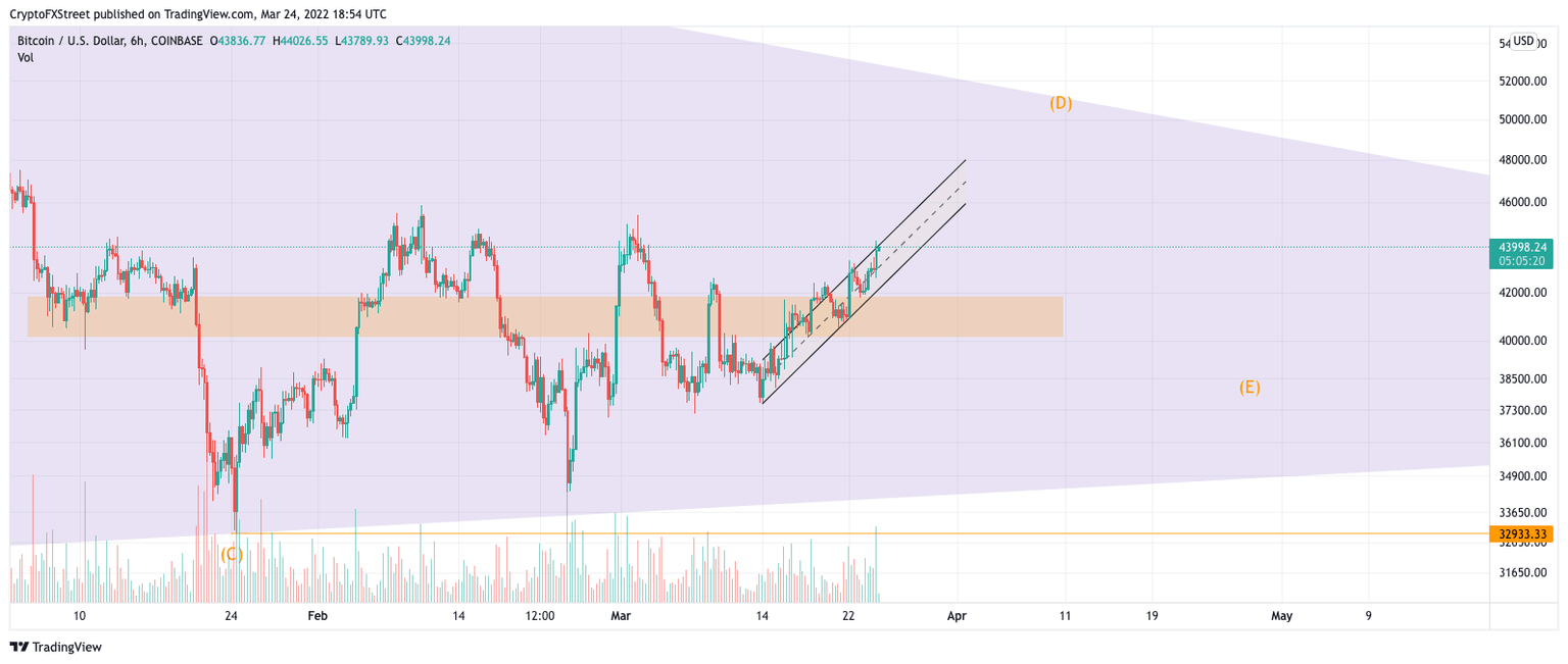 Still, market makers could attempt to flex their power on the 6-hour trend channel, so an explicit invalidation for Bitcoin price is essential. The invalidation for the thesis will be a break below $40,000, the lower end of the previous support zone. Should this happen, BTC price will likely test $38,000 and $36,000, representing an 18% correction from the current levels.
