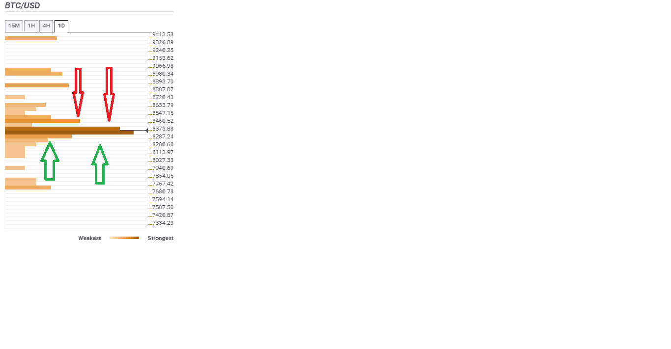 Bitcoin is facing one prominent hurdle at $8,373. If this hurdle is overcome, the potential for a breakout towards $9,000 will be immense. Meanwhile, the cluster of indicators converging here consists of SMA 10 four-hour, previous high one-hour, Bollinger Band four-hour middle, SMA 200 15-minutes, Bollinger Band 15-mins middle and the Fibonacci 38.2% daily among others.