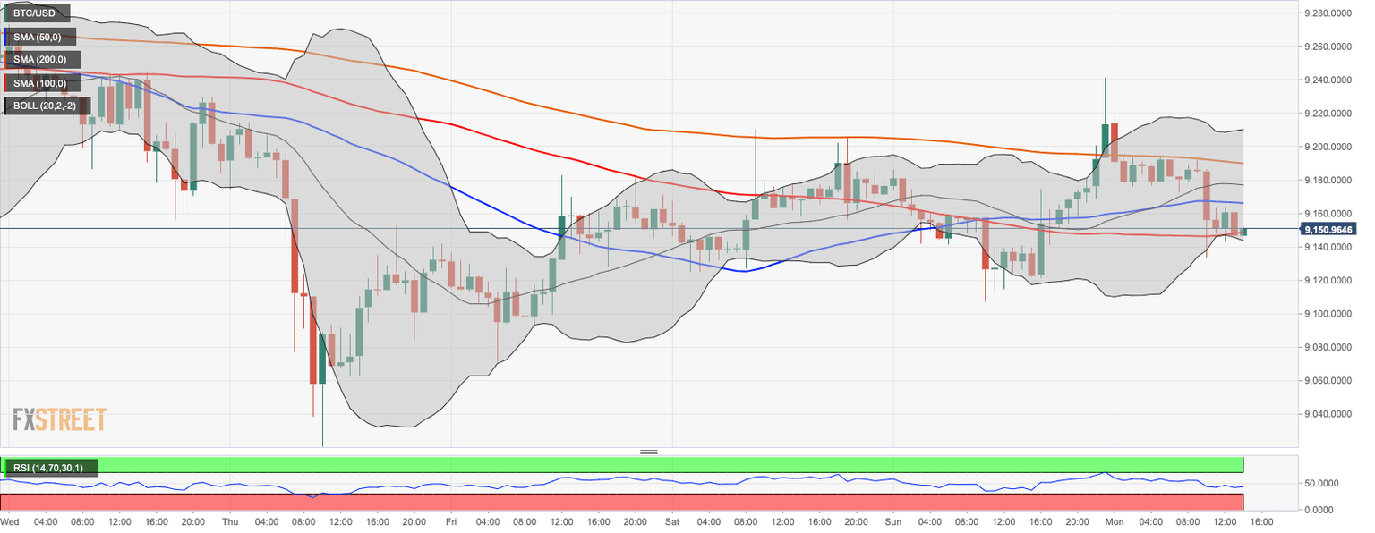 On the intraday charts, BTC/USD may be vulnerable to further losses if the price settles below 50-hour SMA at $9,150. However, from the longer-term point of view, BTC is still in the range as long as the lower boundary of the recent consolidation channel $9,000 remains unbroken.