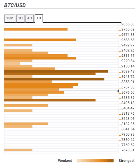 $9,050 - 38.2% Fibo retracement weekly, the upper line of 4-hour Bollinger Band, Pivot Point 1-day Resistance 1