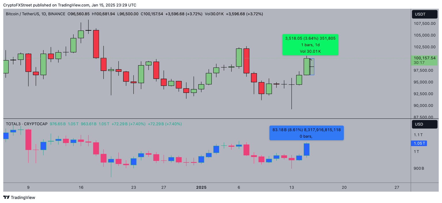 - Bitcoin price stalled at $100,600 on Wednesday, capping its daily gains at 3%.
