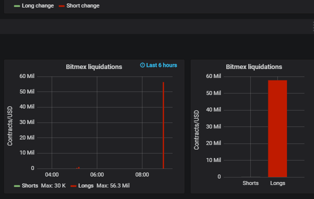 - Bitcoin longs liquidations on BitMEX exchange hit $56 million.