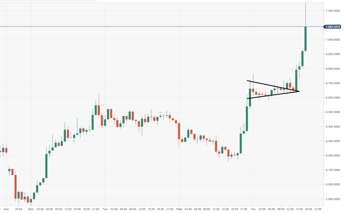 - Bitcoin price has surged higher on Thursday, jumping back above the psychological $7000 mark.