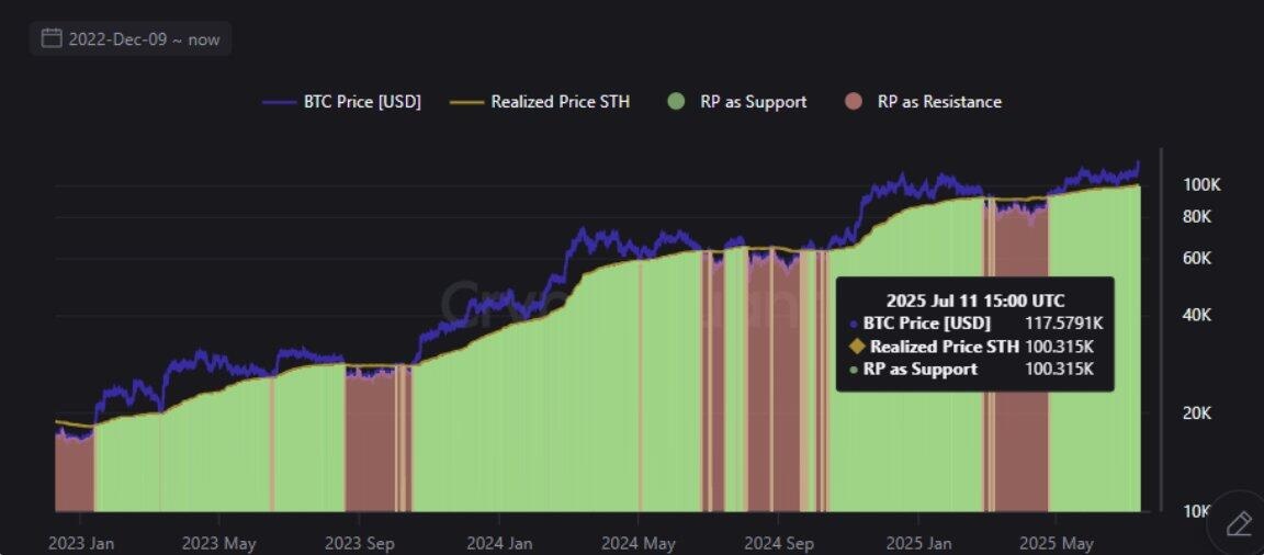Likewise, short-term holders (STHs) have resisted the urge to lock in profits despite Bitcoin's push to a record high. The Short-Term Holder Realized Price — used to track the average acquisition cost for coins held for less than 155 days — is currently hovering around $100,000, according to a CryptoQuant report on Friday.