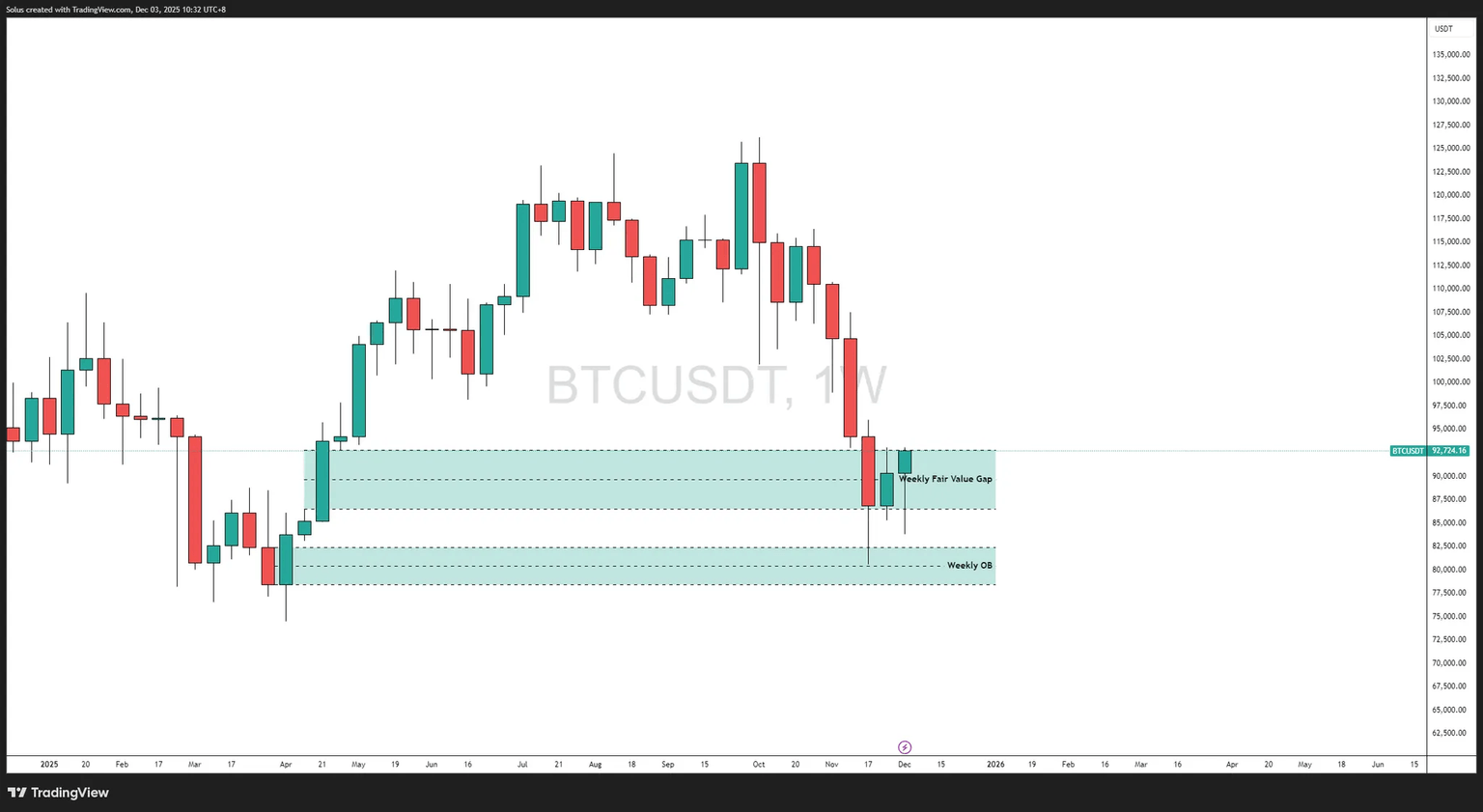 Higher-timeframe investors should watch how price behaves inside the Weekly FVG.