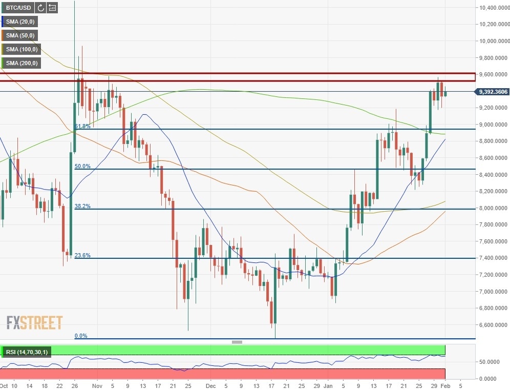 After breaking above the $9,000 handle earlier in the week, Bitcoin (BTC/USD) pushed higher and touched its best level since late October at $9.570 on Thursday. However, the pair lost its traction and erased nearly 2% on Friday before starting to consolidate its losses on Saturday. As of writing, the pair was up 0.6% on the day at $9,385.