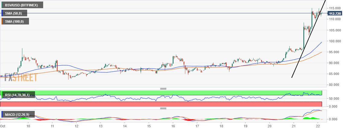 - Following the impeccable surge, BSV is trading in a range between $110 and $115.