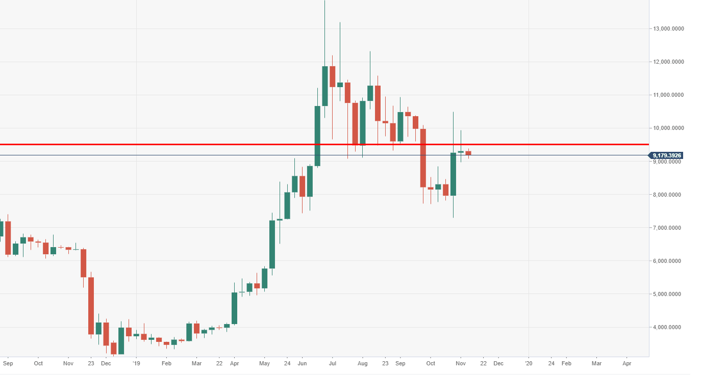 - Big resistance barrier should be noted at $9500, a breakdown here could provide a fresh wave to buying pressure.