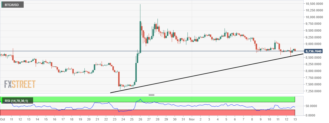 Bitcoin is lethargic above $8,700 but $9,000 must be broken for bulls to have a clear path of sight leading to $10,000.