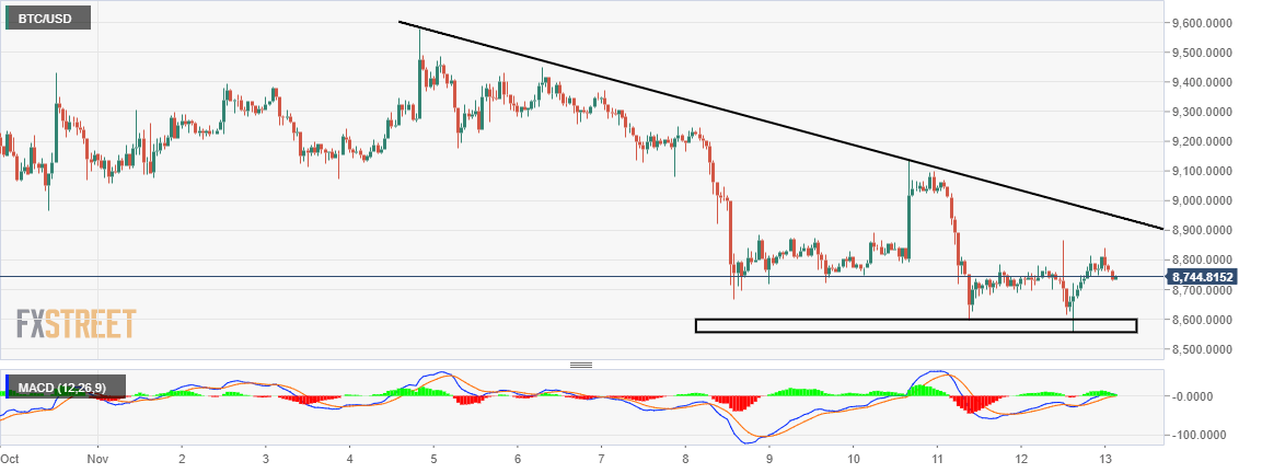 Apart from the trendline support Bitcoin fill seek refuge at $8,500, $8,400 and $8,000.