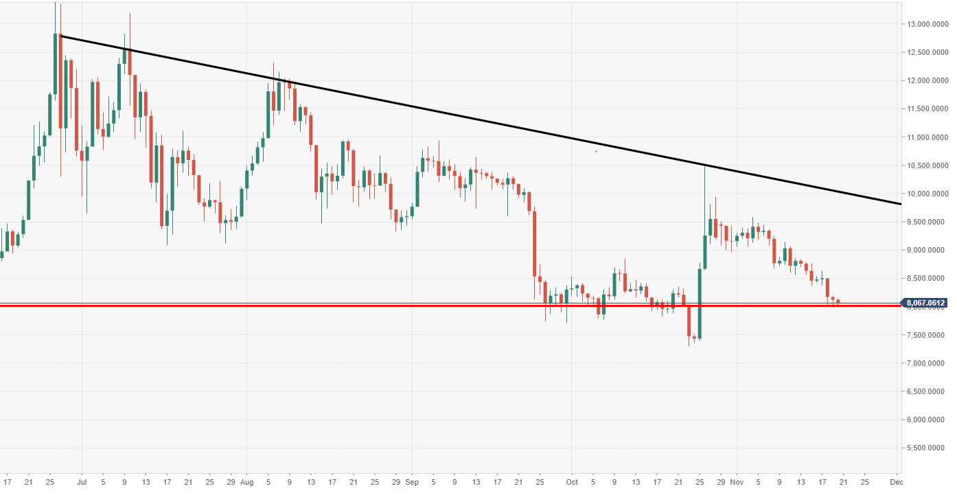 - BTC/USD vulnerable to a fresh wave of selling pressure should daily support at $8000 be broken.