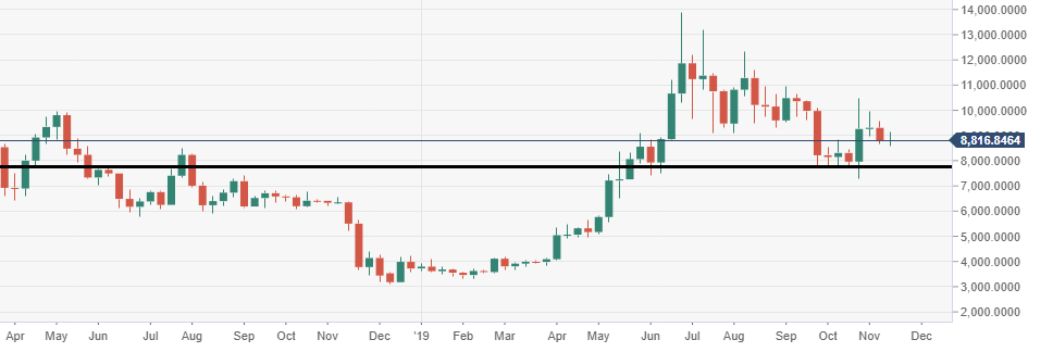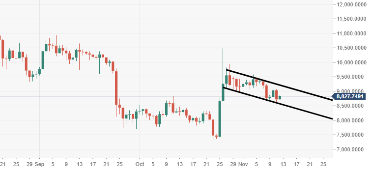 - BTC/USD price action is within consolidation mode, has been since breaching $9000.