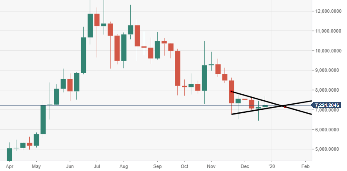 - BTC/USD has been consolidating over the last six weeks, following the heavy fall in November.