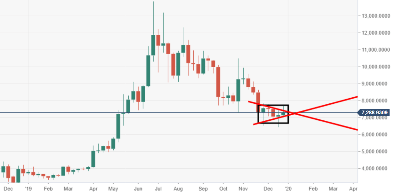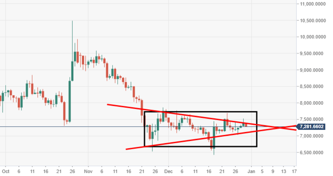 The current price range is from a high of $7500 down to $6500, as can be seen via the daily. BTC/USD had failed to complete a double bottom technical pattern after sees a rejection at the neckline area, $7500.