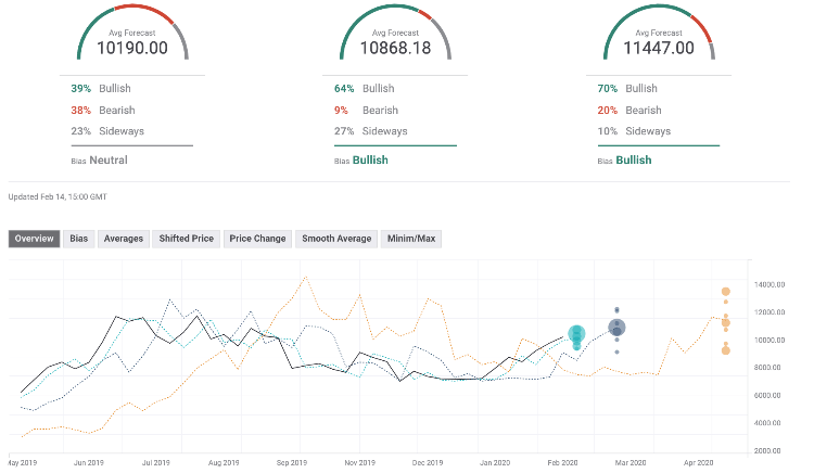 The Forecast Poll of experts has stayed mostly unchanged since the previous week. The expectations on all timeframes except weekly remained bullish. Though the percentage of investors with positive long-term sentiments decreased from 80% to 70%. The average price forecast on all timeframes moved above 10,000. Notably, the quarterly price forecast settled above $11,000.