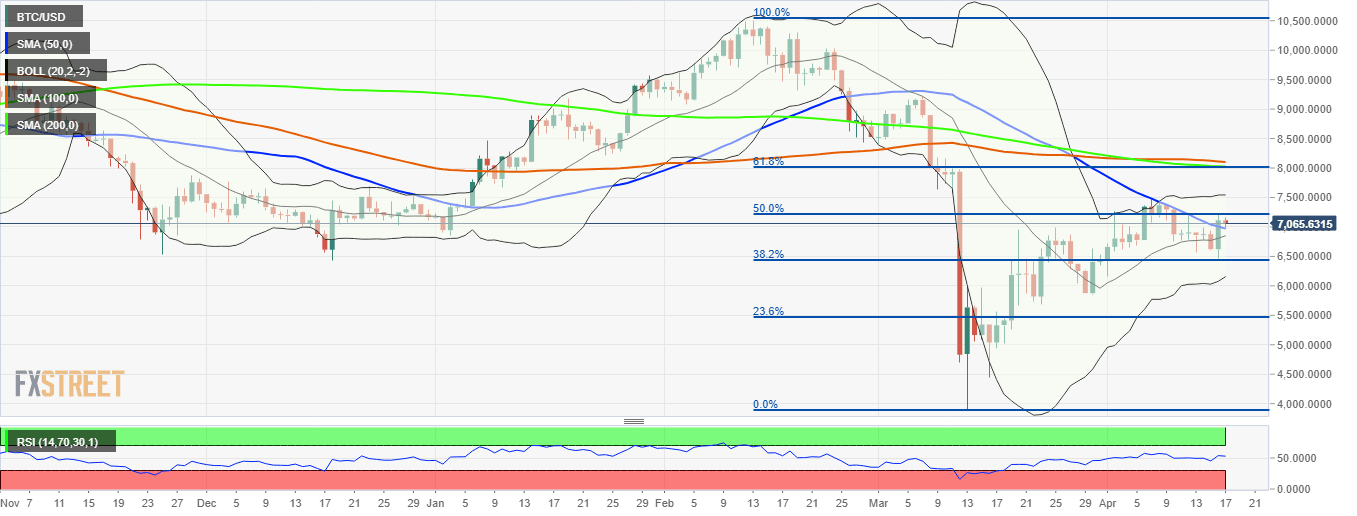 Most part of the week Bitcoin has been controlled by bears that managed to push the price of the first digital coin below $6,500 before bulls woke up and engineered a strong recovery above $7,000. At the time of writing, BTC/USD is changing hands at $7,070, which is only marginally higher than seven days ago and slightly lower than at the beginning of the year. Bitcoin's market capitalization is registered at $129.4 billion, which is 64% of the total market of digital assets.