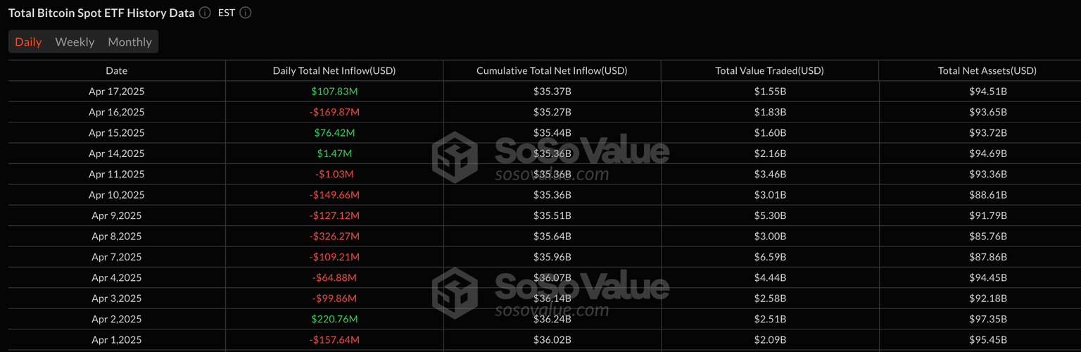 Bitcoin ETF data | Source: SoSoValue