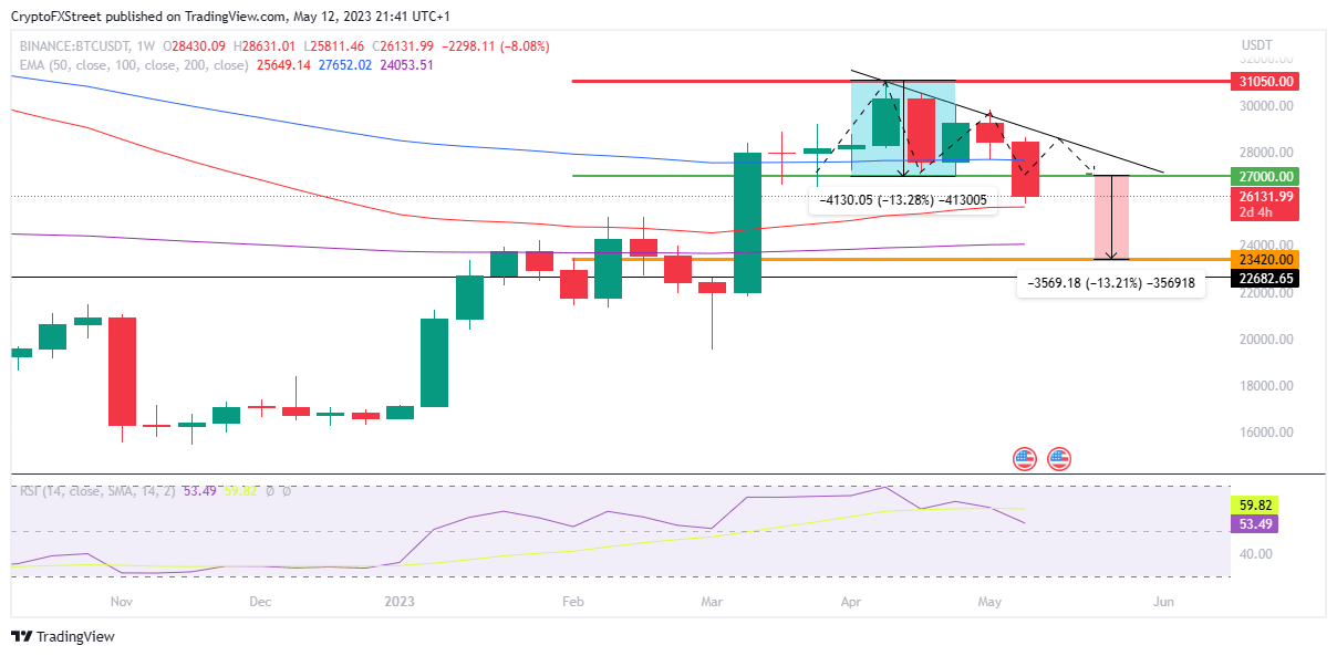Bitcoin price lost the $27,000 support level on May 11, a key supplier congestion level that had held forte since mid-March, keeping BTC from losing all the ground covered since the beginning of the year. In the same way, the price of the flagship crypto has progressively suffered under the suppressing command of a formidable descending trendline for the past month.