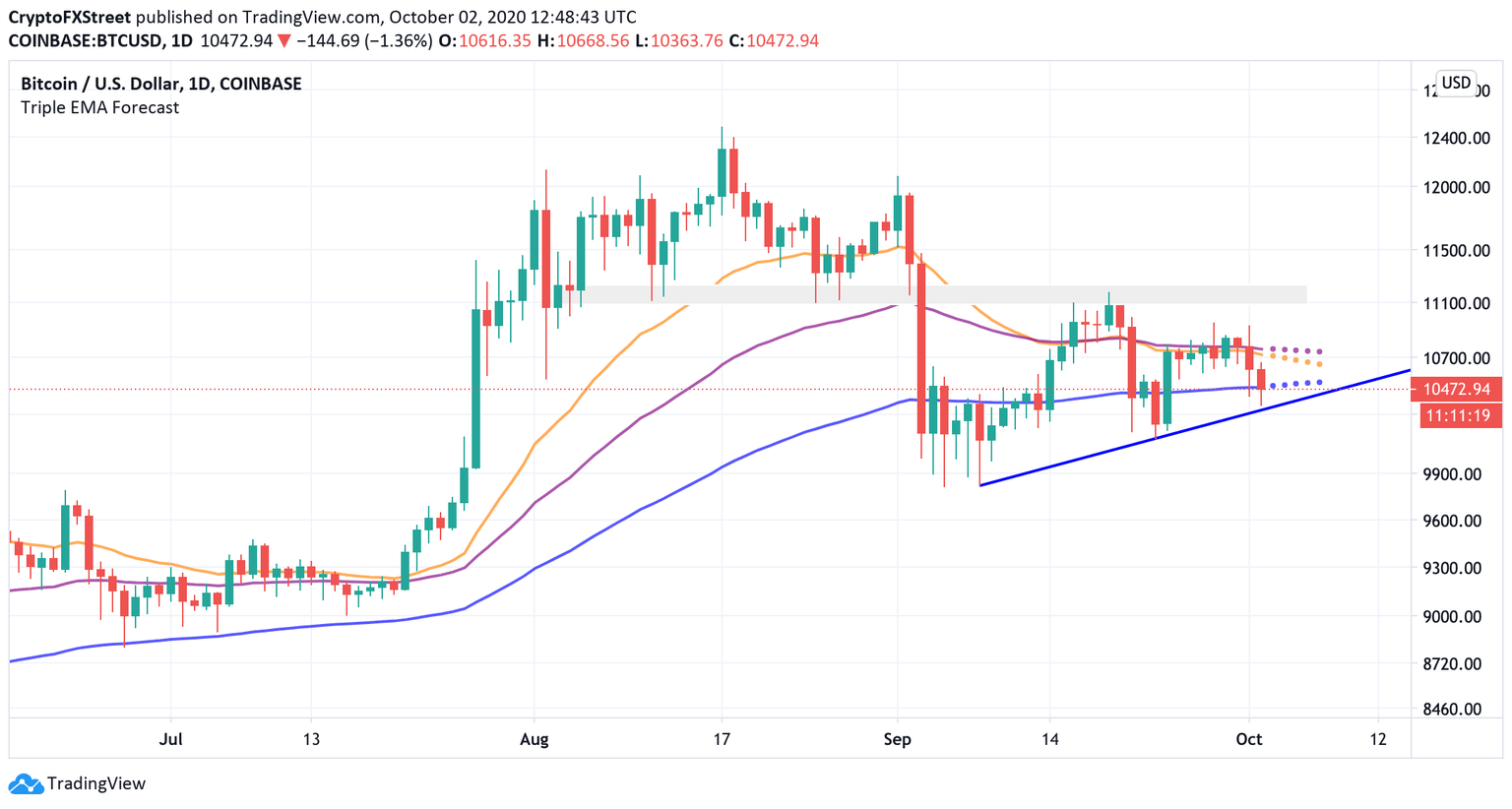 Bitcoin (BTC), the pioneer cryptocurrency, dropped below the local support of $10,600 on Thursday, October 1, and hit a low of $10,363 during early Asian hours on Friday. At the time of writing, BTC/USD is changing hands at $10,450, down over 4% in the last 24 hours. Bitcoin's market capitalization settled at $193 billion, while its market share is registered at 58.2%.