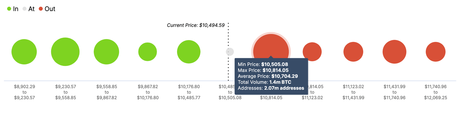 Meanwhile, on-chain data confirms that there is a substantial supply area all the way from the current price and to $10,800. Over 2 million addresses holding 1.4 million BTC have their breakeven point within this range.