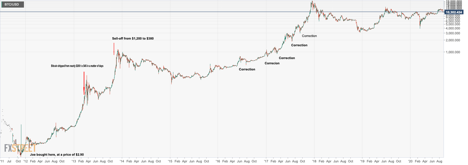 Bitcoin's bull trends are characterized by massive gains in the long term, punctured with steep correction.