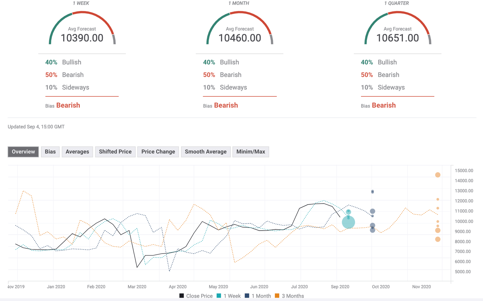 Bitcoin (BTC) scared the bulls with an 8% drawdown this week. The first digital asset attempted a recovery to $12,000 before an eye-watering sell-off to $10,000. At the time of writing, BTC/USD is changing hands at $10,450. The coin has rebounded from the psychological support, but the upside momentum is still limited. Bitcoin's market dominance dropped to 56.3% amid a strong rally of some smaller cap coins related to DeFi-industry.