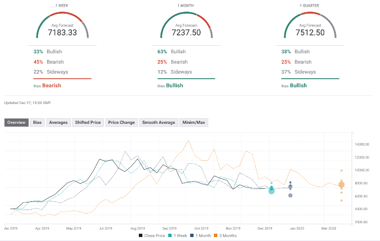 During X-mas week, Bitcoin oscillated in a range limited by $7,700 on the upside and $7,000 on the downside. Recovery attempts have been limited so far, though Bitcoin's market share increased to 68.9% as major altcoins were struggling even more.
