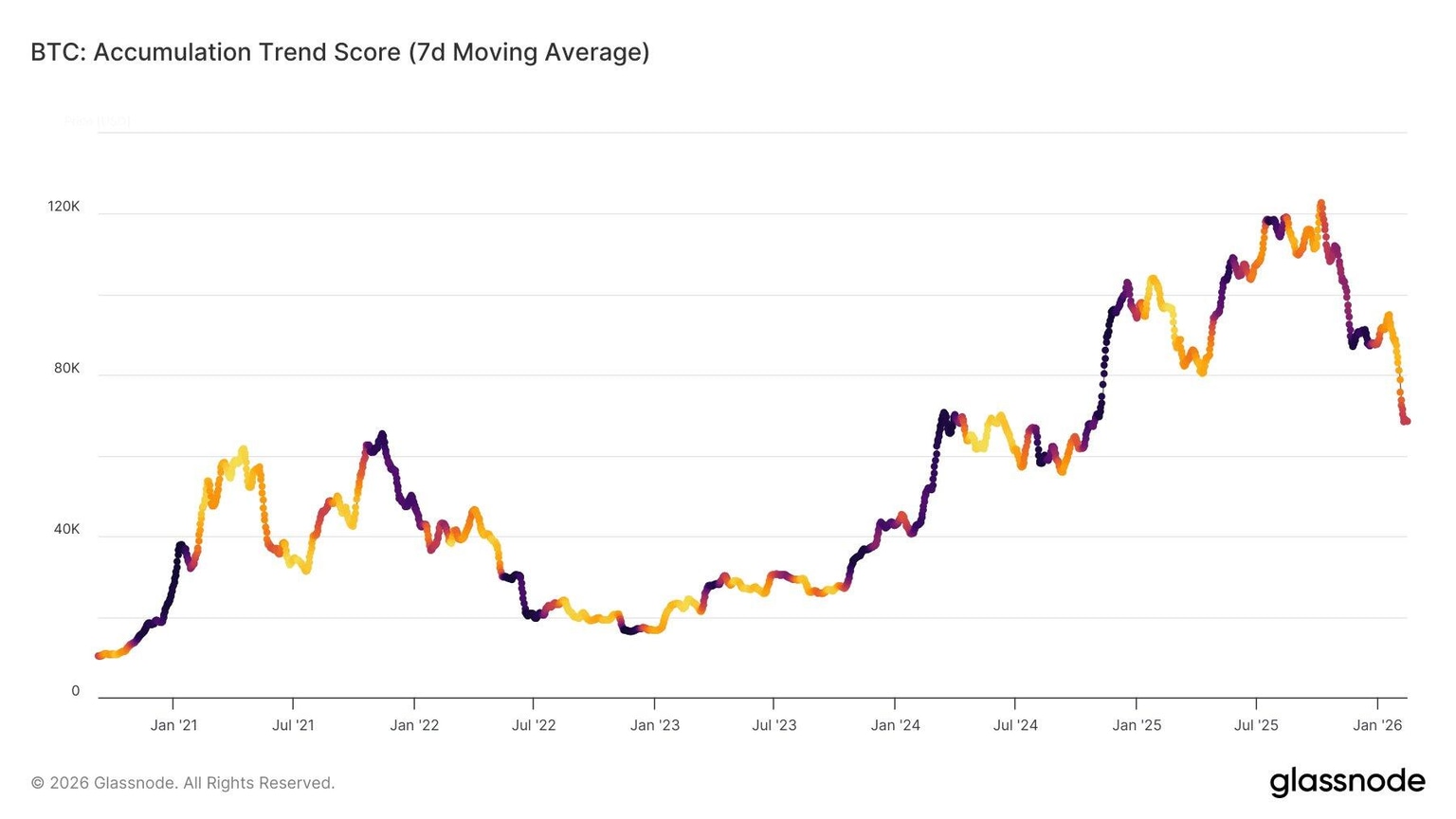 However, in the second leg, the recent drop to $60,000 on February 6 saw accumulation weaker than the strong, aggressive dip-buying that followed the LUNA crash. This indicates that current buying interest lacks the urgency and intensity seen during past major capitulation events, which could reinforce the current defensive, range-bound market structure.