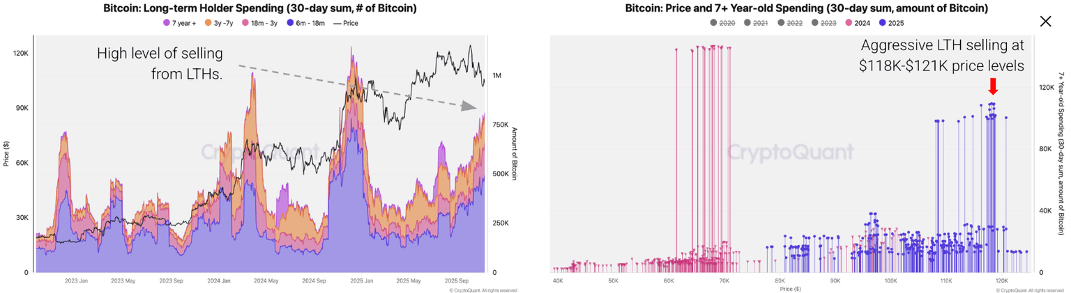Moreover, the Long-term holders (LTHs) have sold a total of 815,000 BTC in the last 30 days, the highest level since January 2024, adding downward pressure to the price. This selling has come at a time when spot demand weakened/contracted as seen in net outflows from Bitcoin ETFs, a negative Coinbase price premium, and a contraction in apparent demand. In previous episodes of high LTHs sales, demand was strong enough to absorb this supply at higher prices, but this is not the case currently. LTHs sold aggressively at the $118,000 and $121,000 price zones.